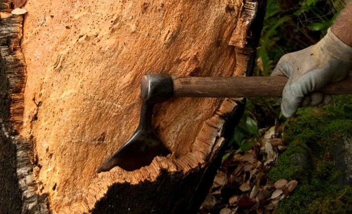 Cork oak bark is a thick spongy hide that is stripped away using a very sharp axe. A good extractor needs to use a firm but precise touch in order to free a large amount of cork without damaging the product or tree.