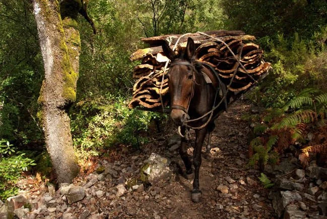These freed portions of cork are called planks. Light and pliable, planks are usually carried off by hand since dense cork forest is rarely accessible by vehicle. An alternative mode of delivery is by horse—a traditional mode of transport that goes back centuries.
